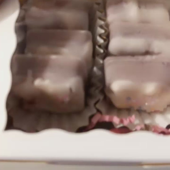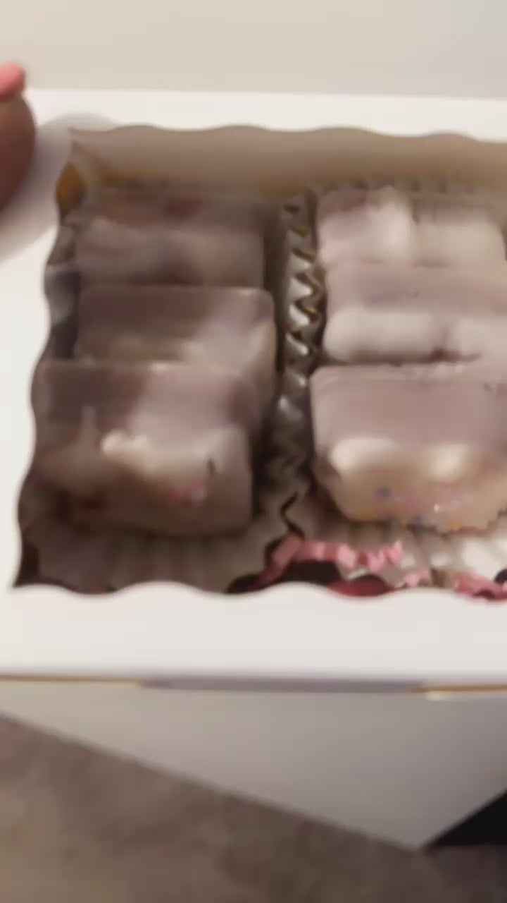All natural coconut wax mixed with a fudge brownie scented oil handmade into these delicious bite size brownie melts topped with vanilla cream cheese icing and garnished with sprinkles.