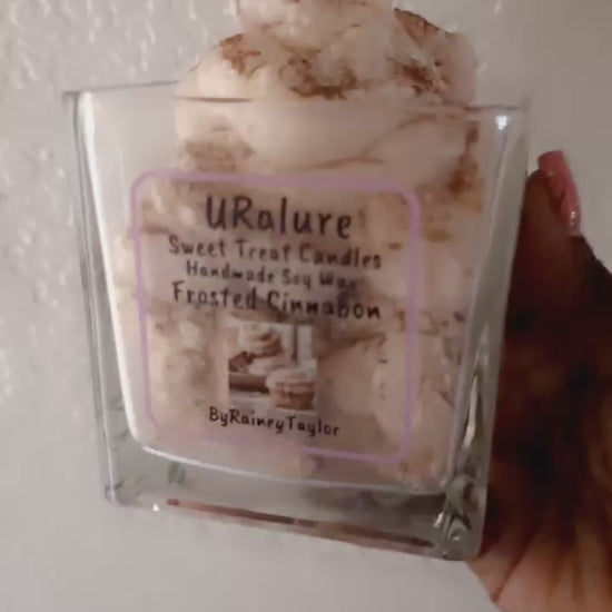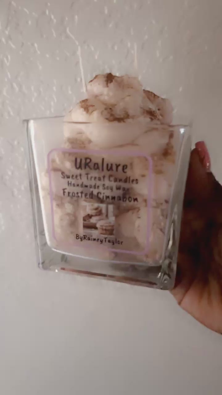 All natural soy wax mixed with a hot fresh Cinnabon scented oil handmade into these delicious cake jars filled with Cinnabon pieces topped with cream cheese icing and garnished with cinnamon.
