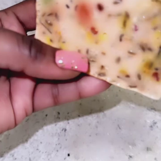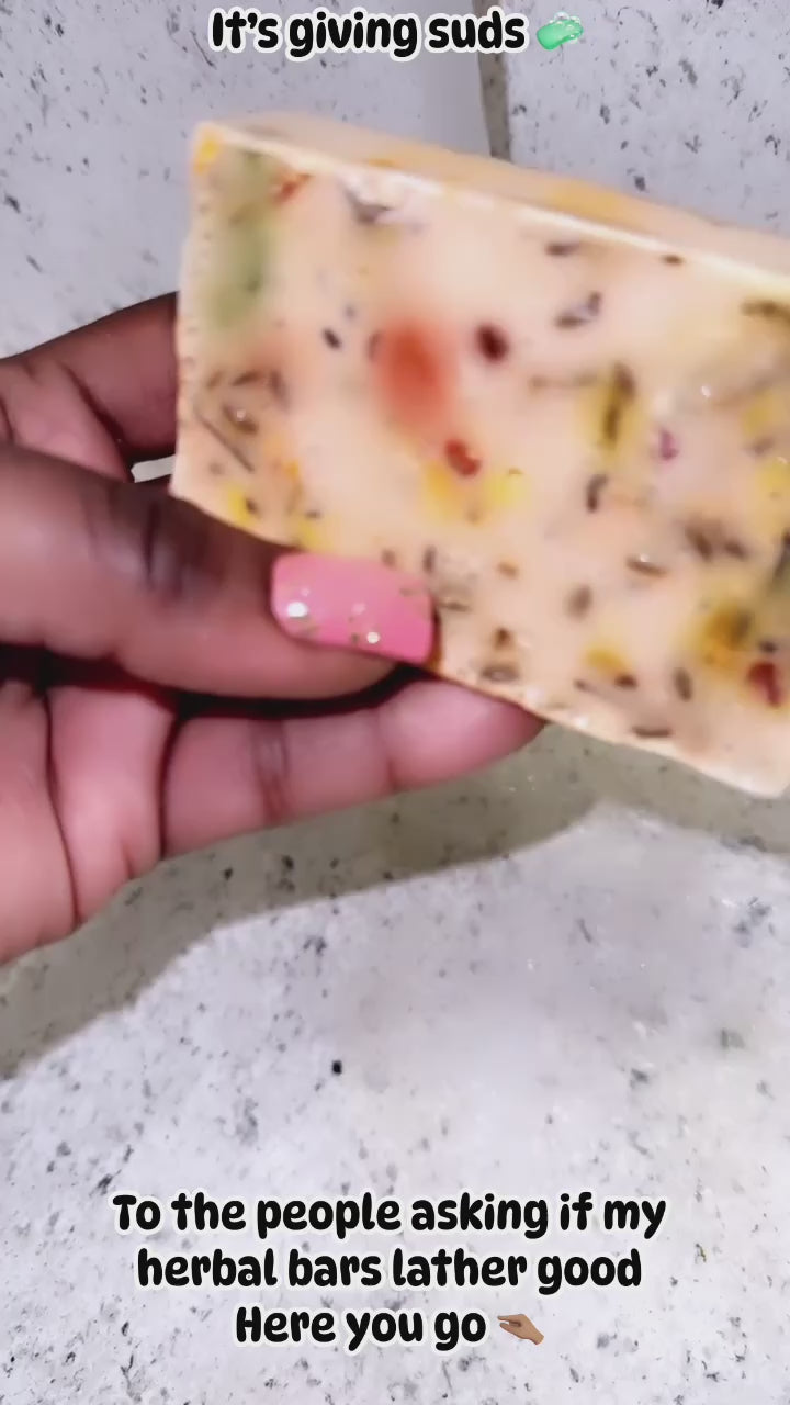 All natural Shea butter soap base mixed with essential oils infused with all natural dried herbs.