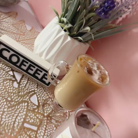 All natural coconut wax mixed with a fresh hot coffee scented oil handmade into these delicious drinks topped with a vanilla scented cream and chilled with ice.
